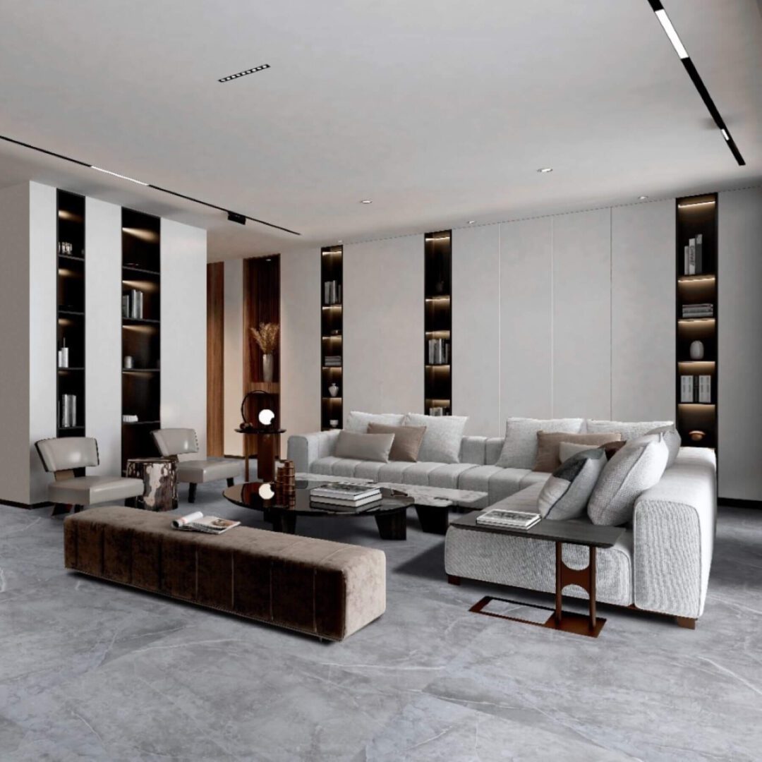 Las baldosas están disponibles en varios tonos de gris, para adaptarse a cualquier estilo de decoración.