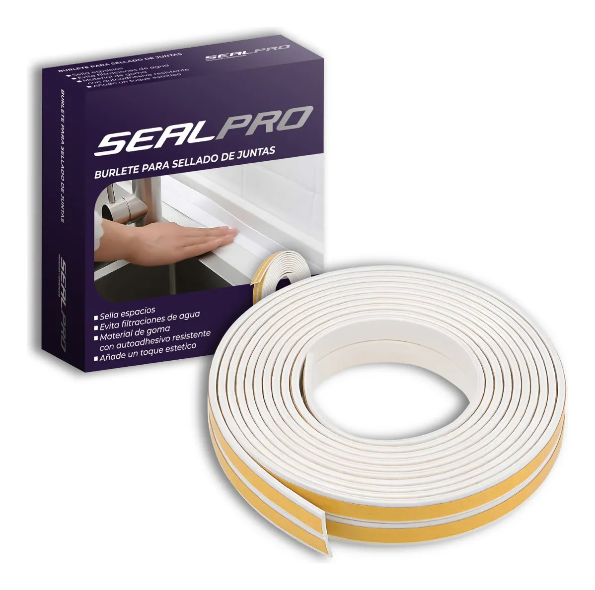Burlete Autoadhesivo Para Sellado De Juntas resistente al agua para uso en bañeras y mesadas