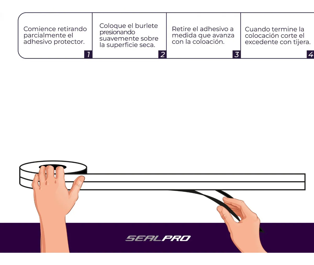 3. Colocación del burlete presionando suavemente sobre la superficie seca.