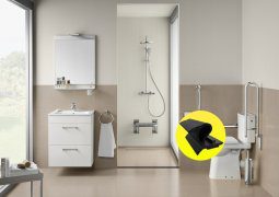 Su forma cumple la función de «gotero» e impide que se desparrame el agua en el baño