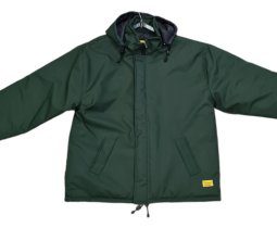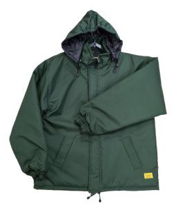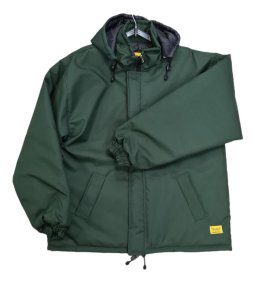 Campera térmica confeccionada en trucker resinado e impermeabilizado, interior de guata 150gr/m2, forrada en tafeta 100% poliéster matelasseada. Capucha anatómica desmontable, tapacierre con velcro, puños con elástico, ajuste de cintura con cordón, tanca y terminal. Dos bolsillos externos diagonales y un bolsillo plaqué interno.