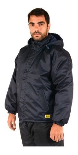 Campera térmica confeccionada en trucker resinado e impermeabilizado, interior de guata 150gr/m2, forrada en tafeta 100% poliéster matelasseada. Capucha anatómica desmontable, tapacierre con velcro, puños con elástico, ajuste de cintura con cordón, tanca y terminal. Dos bolsillos externos diagonales y un bolsillo plaqué interno.