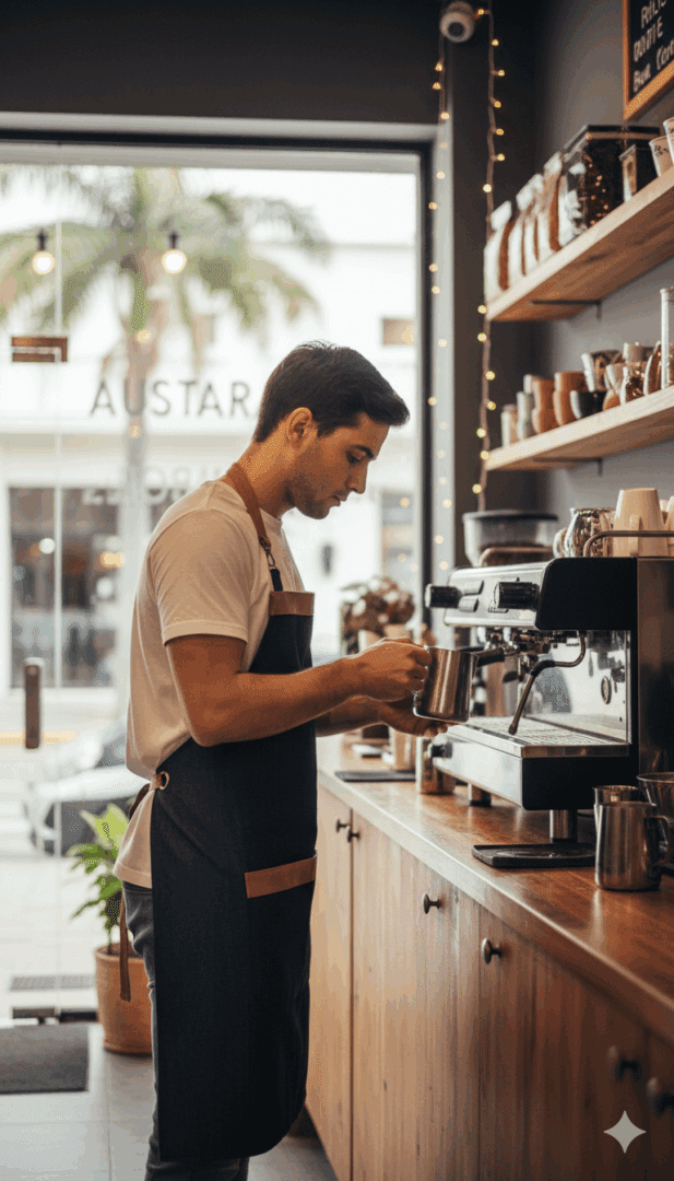 Delantal Parrillero de jean ajustable con detalles en cuero.