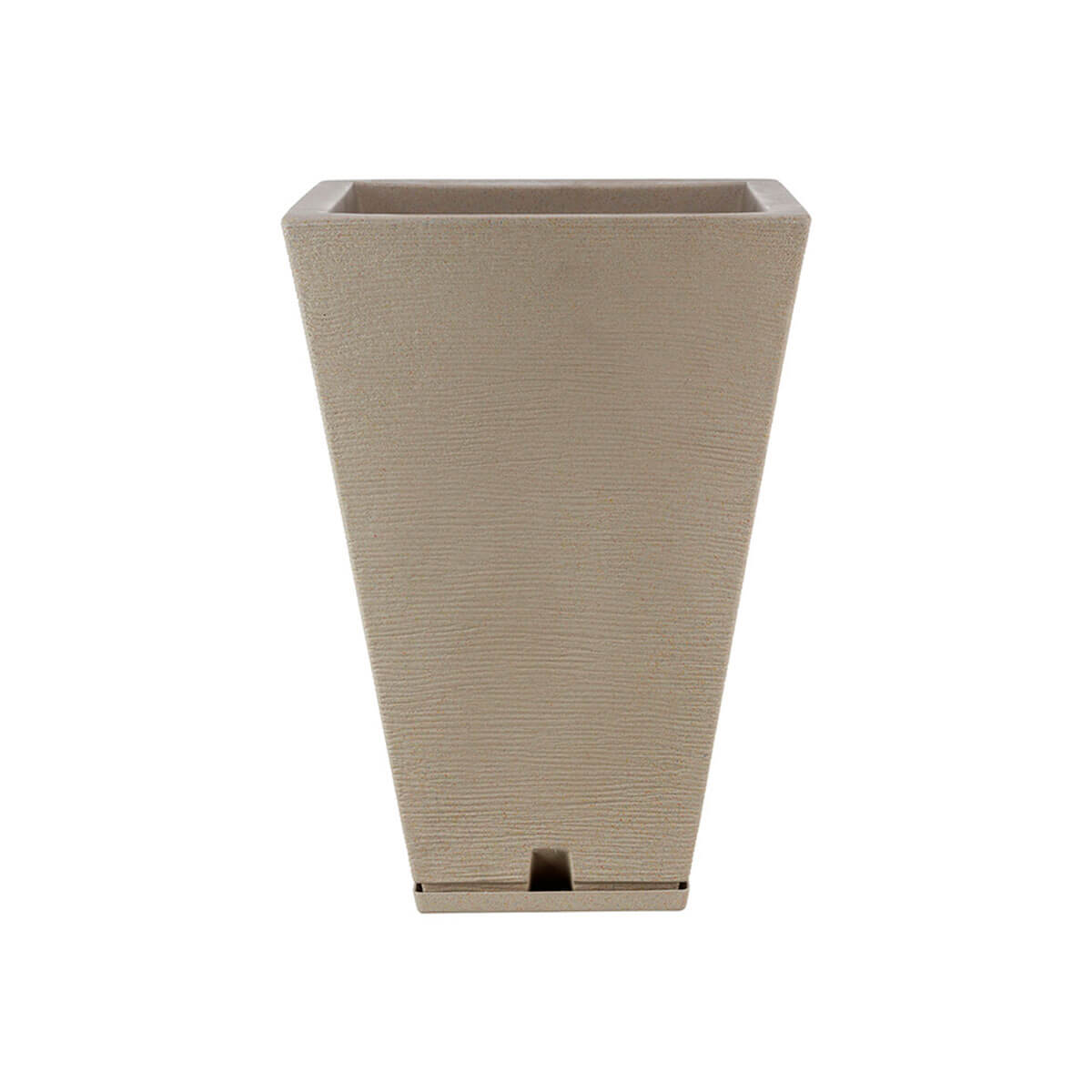 - Orificio de drenaje: Cuenta con orificios en la base para asegurar un correcto drenaje del agua y evitar el encharcamiento de las raíces.