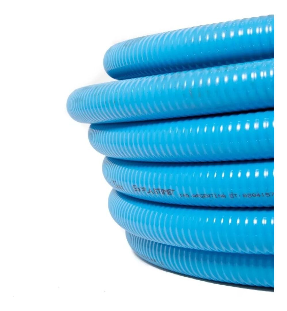 Elaborado con PVC 100% virgen resistente a los hidrocarburos, color azul. Espiral interno PVC rígido alto impacto. Superficie interna lisa y perfectamente calibrada, que evita la acumulación de sedimentos. Resistente a los agentes atmosféricos y a numerosos productos químicos (consultar tabla). Libre de cadmio y plomo. Resistente a la abrasión. Temperatura de Trabajo de -10º C a +60º C.