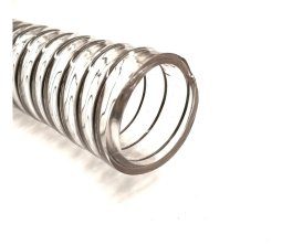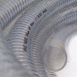 Elaborado en PVC 100% virgen, flexible, con refuerzo interior de alambre acerado, apto para el contacto con alimentos, resistente a numerosos productos químicos (ver tabla de resistencia), antiestático. Temperatura de trabajo -10º C + 60ºC