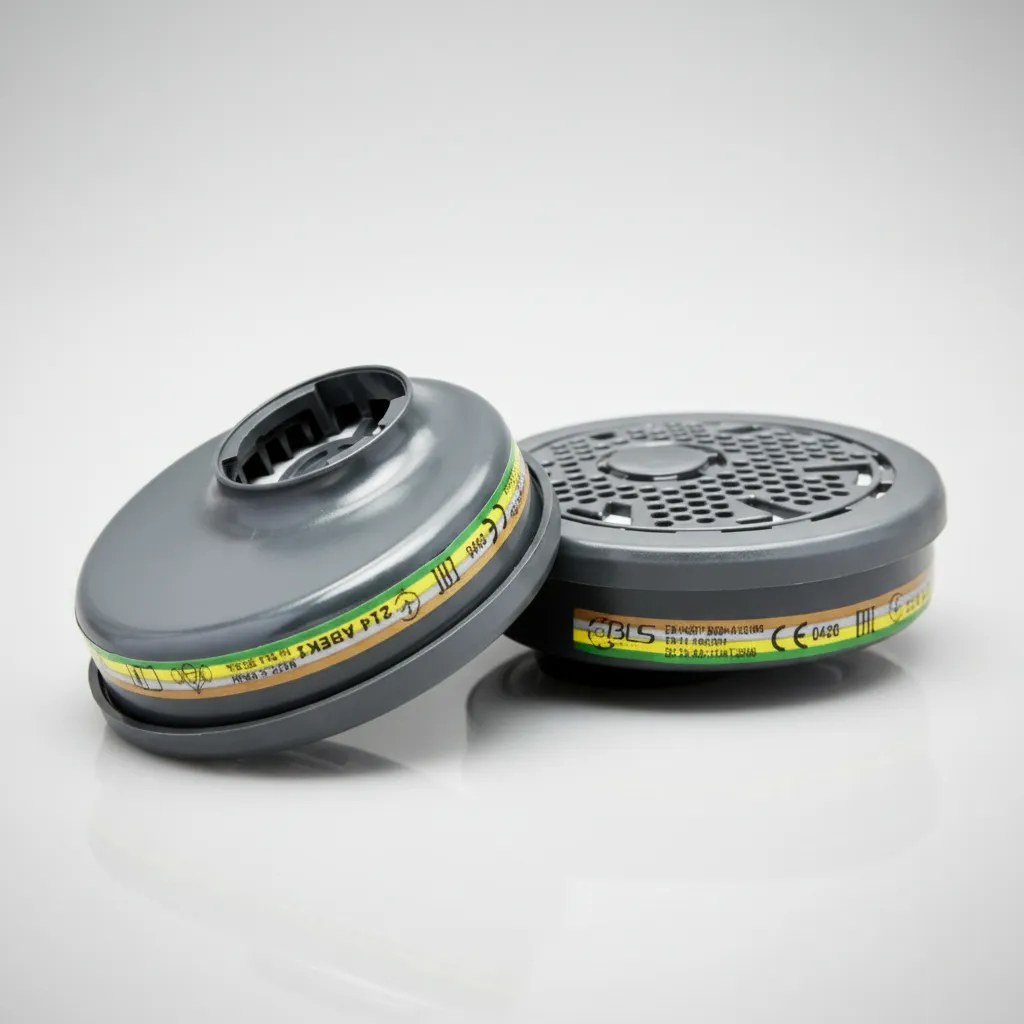 Filtro Multigas 214 ABEK1 brinda protección contra gases y vapores orgánicos, inorgánicos, ácidos, amoniaco, clase 1. CARBÓN ACTIVADO: La calidad de los carbones activados utilizados por BLS para la filtración de gases y vapores, cumple los más altos estándares de seguridad, lo que garantiza un excelente rendimiento y durabilidad de filtración. Producidos sin aditivos tóxicos, tales como; cromo hexavalente (Cr VI) y están certificados de calidad alimentaria (REGVE231/2017).