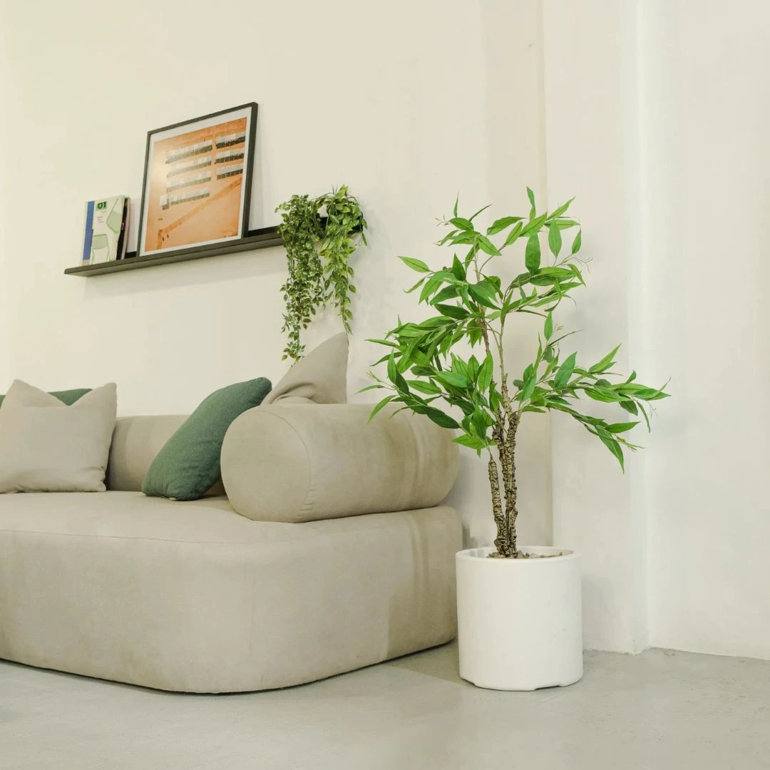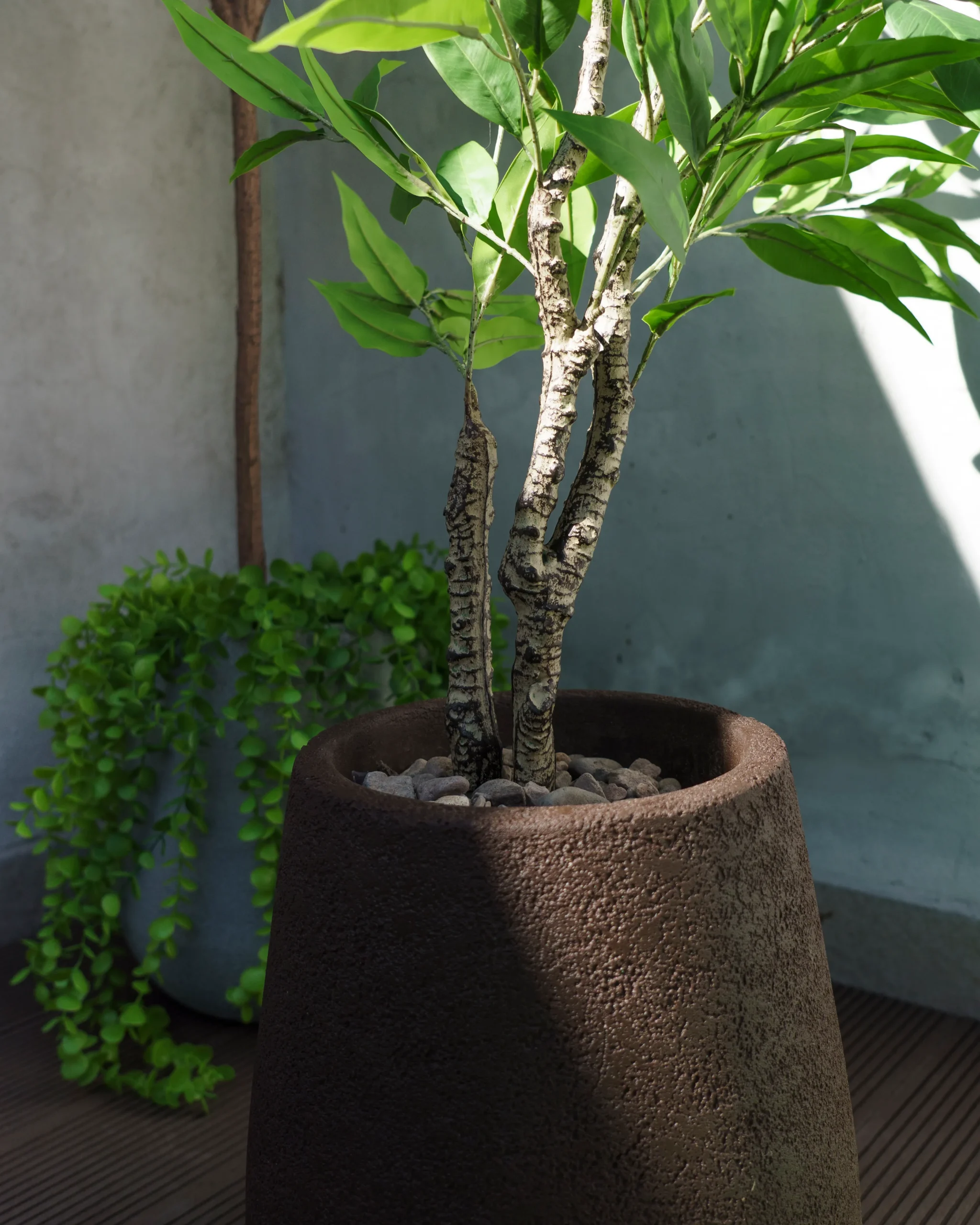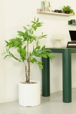 Con un tronco texturado súper realista y hojas de un verde vibrante, este ficus no pasa desapercibido. Aporta vida, sin marchitarse, sin riegos, sin tierra. Siempre impecable.