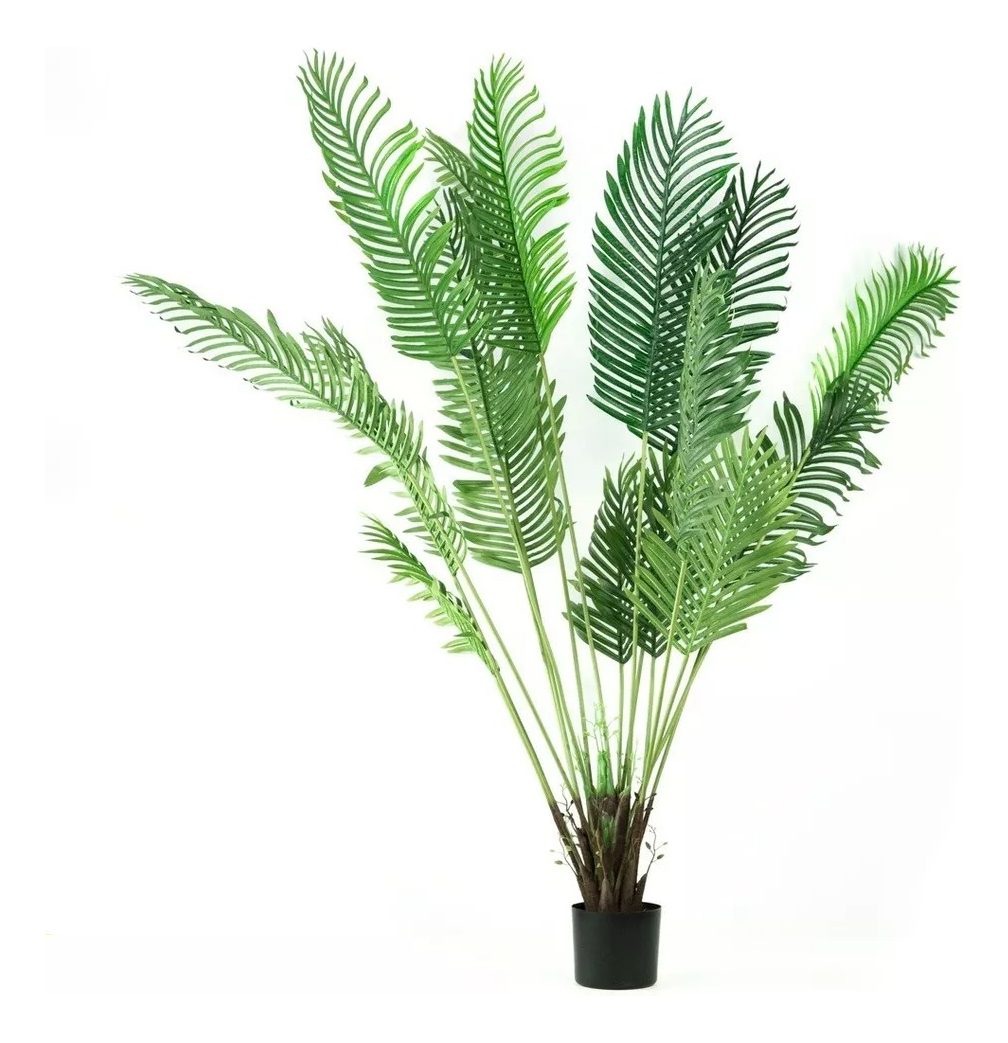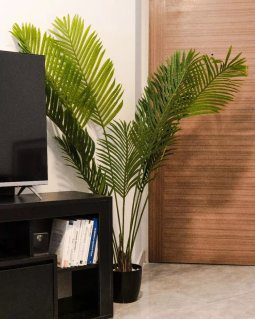 Este ejemplar que destaca por sus abundantes palmas arqueadas y un verde tropical es un espécimen ideal para la decoración. Su versión artificial acaba por ser una elección más que conveniente a la hora de tener en cuenta los grandes cuidados que requiere la Palmera Areca natural, tales como una alta demanda de humedad, puesto que por el contrario podría verse afectado el color de sus hojas, y riego abundante y frecuente, entre otros.